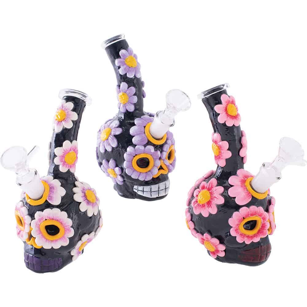 PW238 – 5.9″ Resin Skull Flower Bubbler Glass Pipe